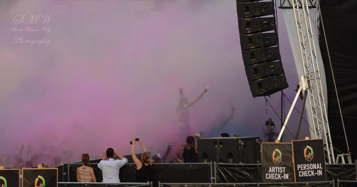 Holi is a festival in India which is celebrated to welcome spring, to be thankful for the good thing and to forgive old struggles. It lasts about 2 days and people are spraying coloured water and powder over each other and are doing more rituals like burning a straw doll, the Holika. Since a few years the Holi is also celebrated in Europe but it is just adopted from it. The Holi festivals of colours don't have any religious meaning. They are just for having fun with spraying coloured power over each other and listening to DJ-music. On the pictures you can see such a Holi Festival in Dresden where I took photos together with Weltbilder Bilderwelt and